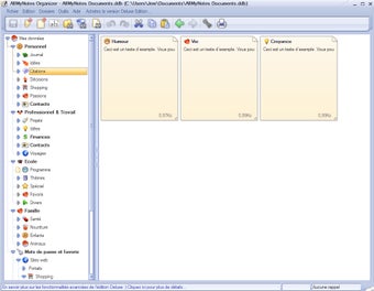 Utiliser AllMyNotes Organizer Portable est réellement agréable et instinctif, grâce à des icônes explicites et à une traduction française excellente. Plusieurs bonnes idées renforcent cette bonne impression, comme le fait de placer par défaut quelques exemples de notes vides dans les répertoires, pour inciter à poser ses premières idées sur le logiciel.